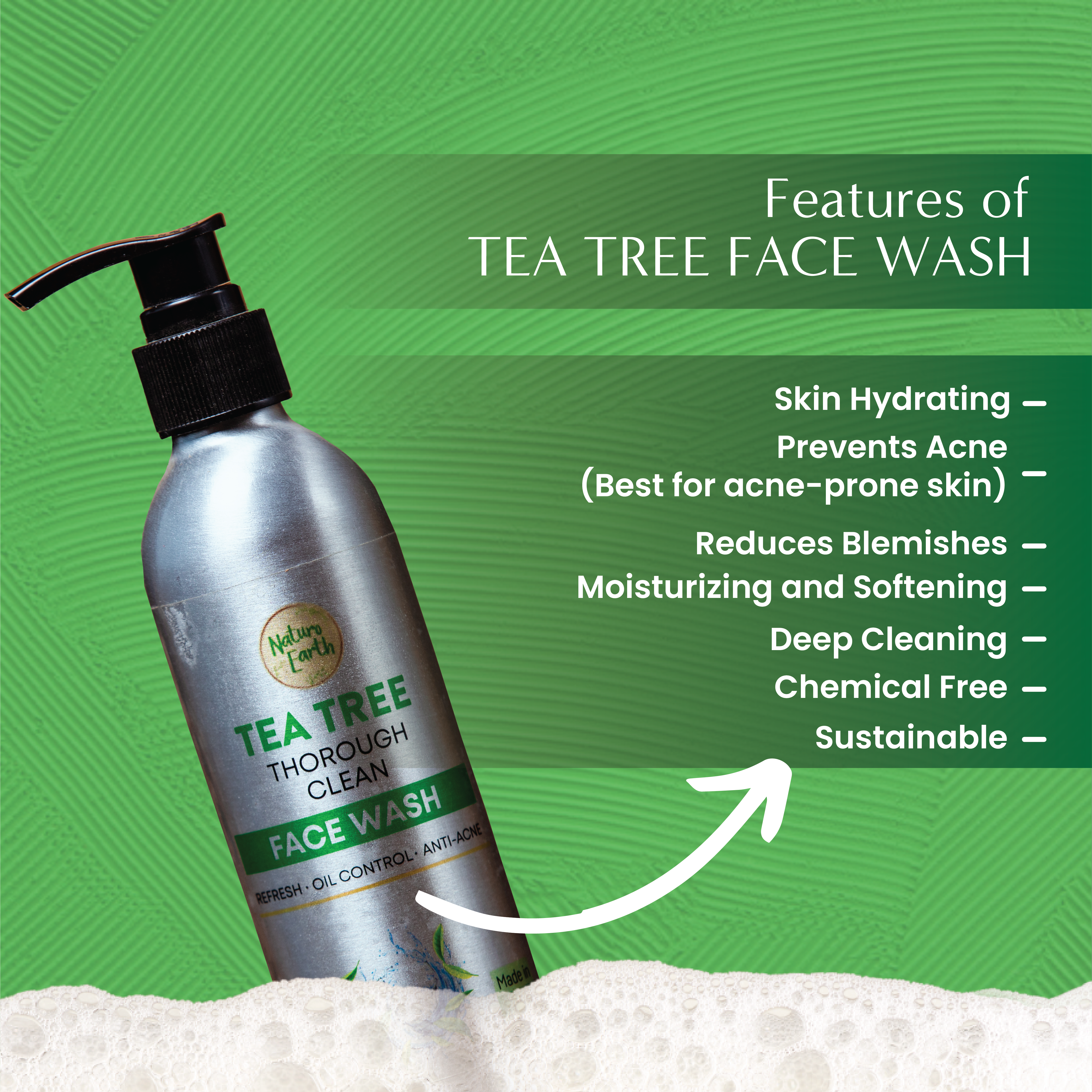 Our Tea Tree Face Wash is a popular choice for treating acne and blemished skin because of its anti-inflammatory and anti-microbial properties. Tea Tree can be used to treat conditions and symptoms that affects skin and hair, and hence is suitable for both male and female. A refreshing lather removes impurities and excess oil, leaving skin clean and purified. It also has the ability to fight pimples and cleanse blemished skin.
